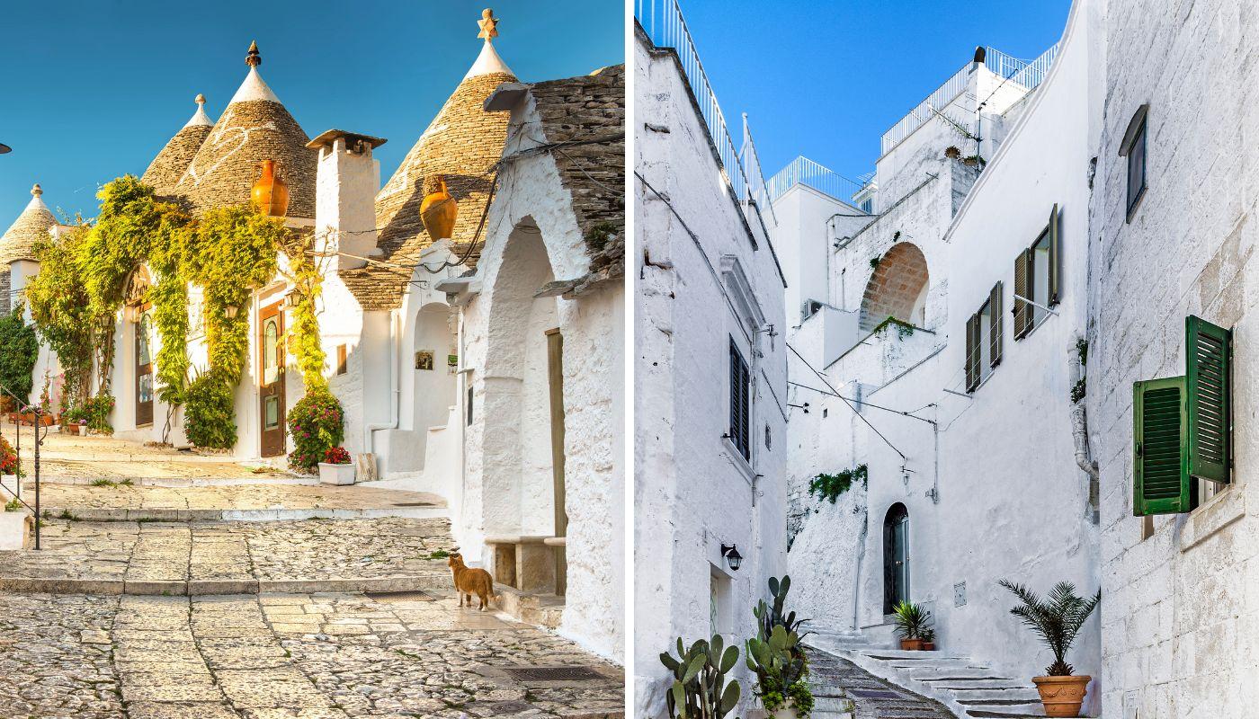 Puglia o Apulia és una regió del sud d'Itàlia i està situada exactament al "tacó". Aquest territori és ple de poblacions pintoresques que acullen una arquitectura única, com Alberobello, on admirar els tradicionals trulli en un passeig pel seu centre històric, declarat Patrimoni de la Humanitat per la Unesco. Fascinant és també Ostuni, anomenada la ciutat blanca i on podràs visitar la seva preciosa catedral romànic-gòtica. Per la seva banda, Matera és una ciutat excavada a la roca, que sembla extreta d'una postal, amb impressionants sassi o grutes que explorar.
