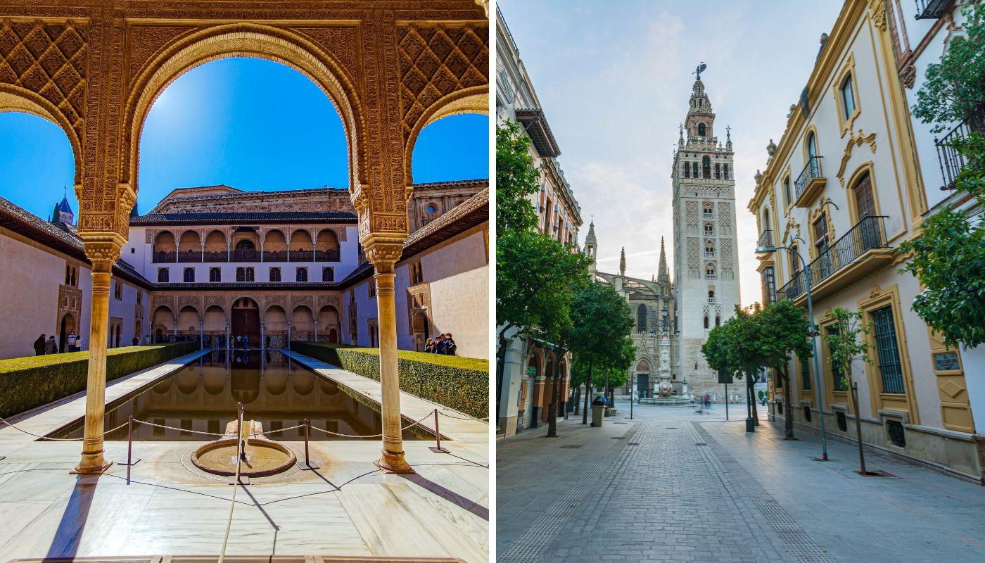 Des del nord ens anem al sud per explorar tres de les ciutats més belles d'Andalusia. Granada és, amb l'Alhambra, tot un referent arquitectònic i històric al nostre país, mentre que Còrdova maravilla amb l'espectacular Mesquita-Catedral i la seva jueria. Per la seva banda, Sevilla no només conquereix pel seu aroma a azahar, sinó també per la seva arquitectura civil, des de l'Alcázar de Sevilla, declarat Patrimoni de la Humanitat per la Unesco, fins a la Torre del Oro o el Archivo de Indias.