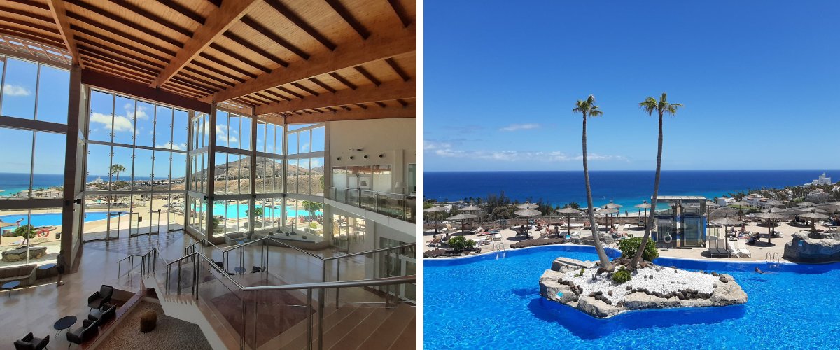 Tomamos un vuelo desde Barcelona destino Fuerteventura. Los tres primeros días nos alojamos en Secrets Bahía Real Fuerteventura. Es el primer hotel 5* gran lujo de la isla. Una apuesta por ofrecer una estancia premium al cliente más exigente. Este resort & spa está situado en la zona norte de Fuerteventura y acoge a clientes a partir de 16 años. Recientemente reformado, ha conservado el estilo colonial, elegante y romántico del anterior hotel. Es ideal para personas que buscan una estancia relajada y tranquila en la isla, especialmente para parejas. Desde el resort puedes disfrutar de una privilegiada vista de la Isla de los Lobos y la costa sur de Lanzarote.